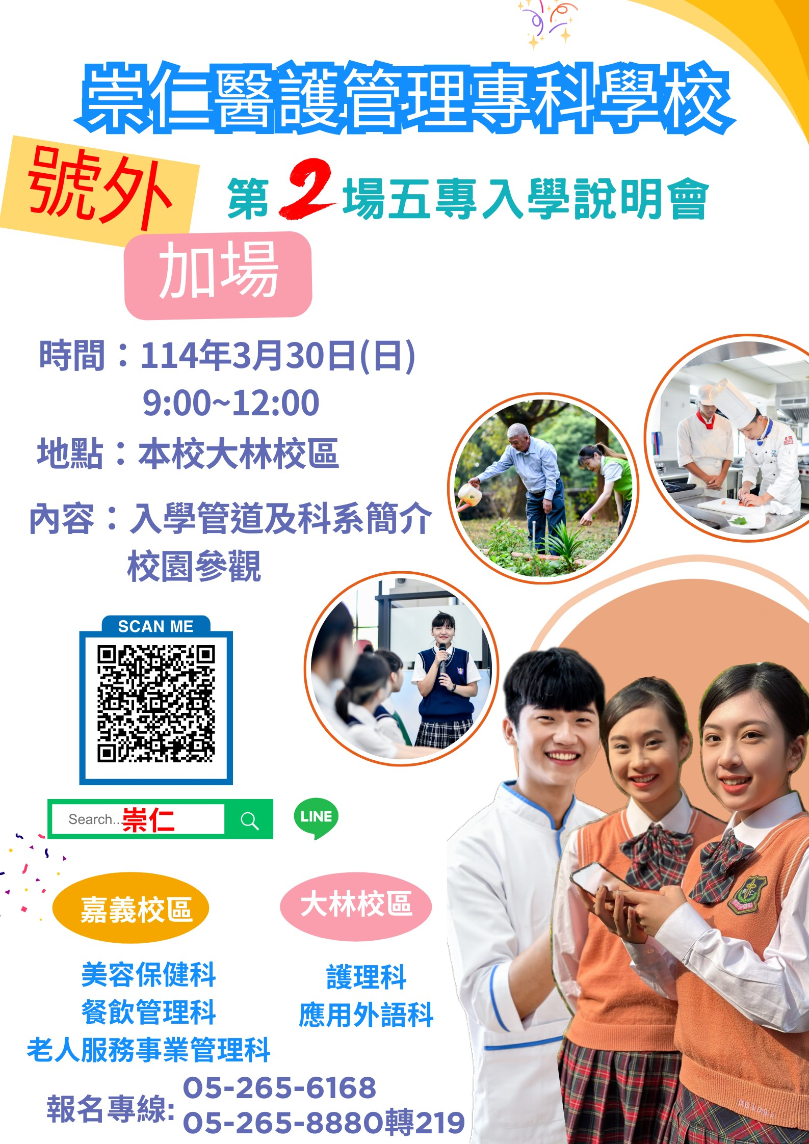 四、聯繫方式:(05)2656168 / (05)2658880分機219 招生中心。