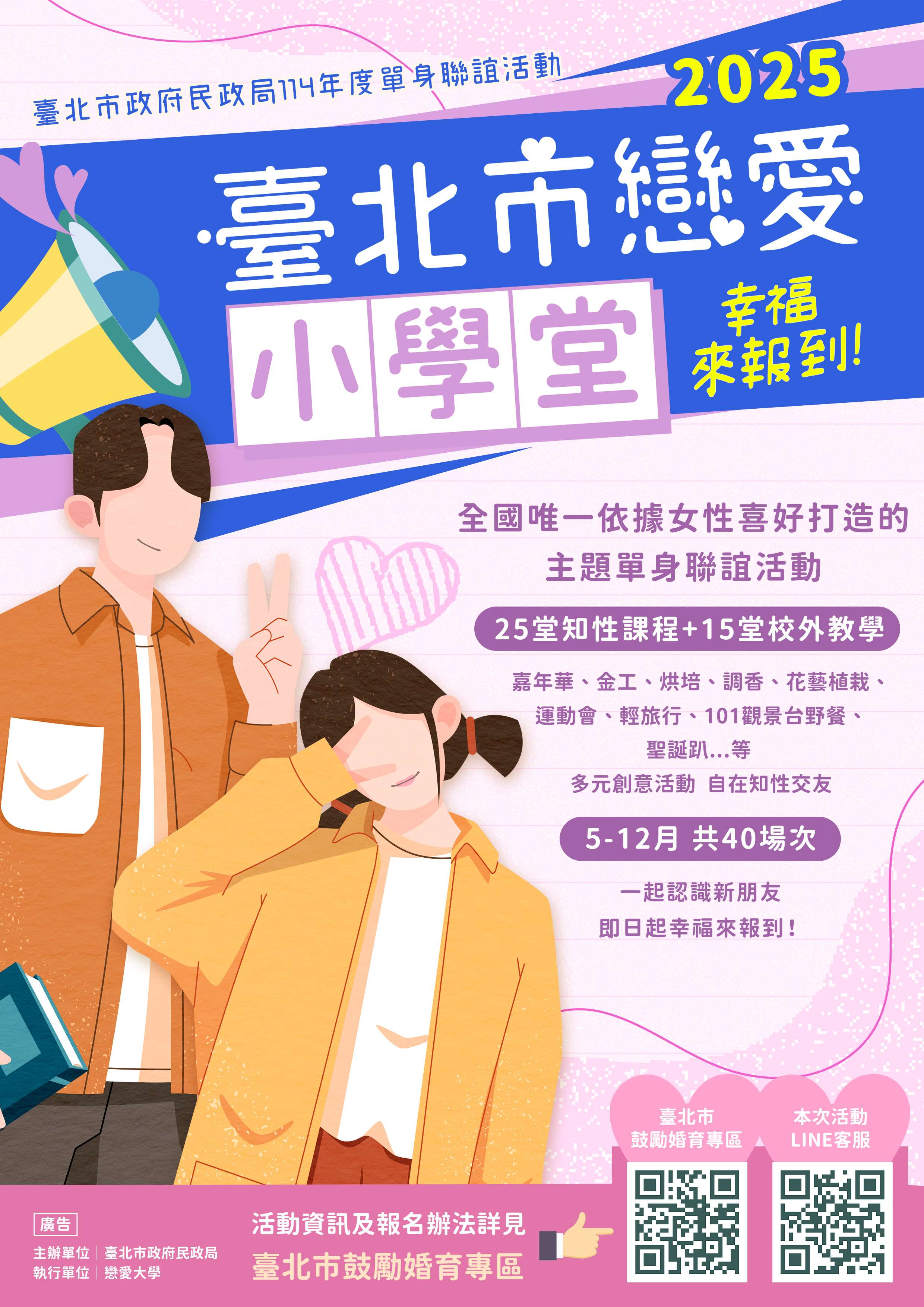 臺北市政府民政局單身聯誼【2025臺北市戀愛小學堂-幸福來報到!】開放報名囉!