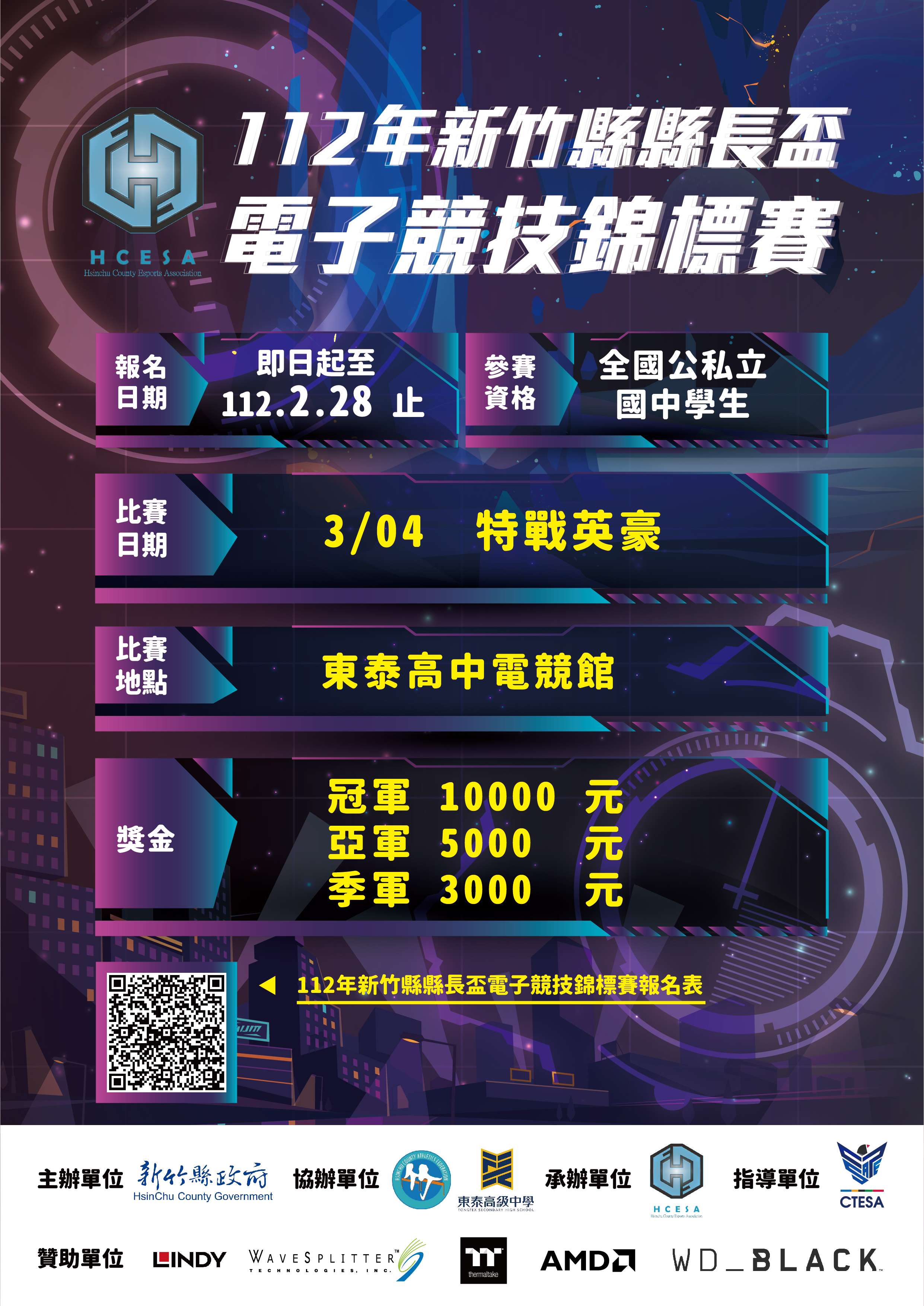 五、報名方式:公告於【新竹縣體育會電子競技委員會】 Facebook粉絲專業。