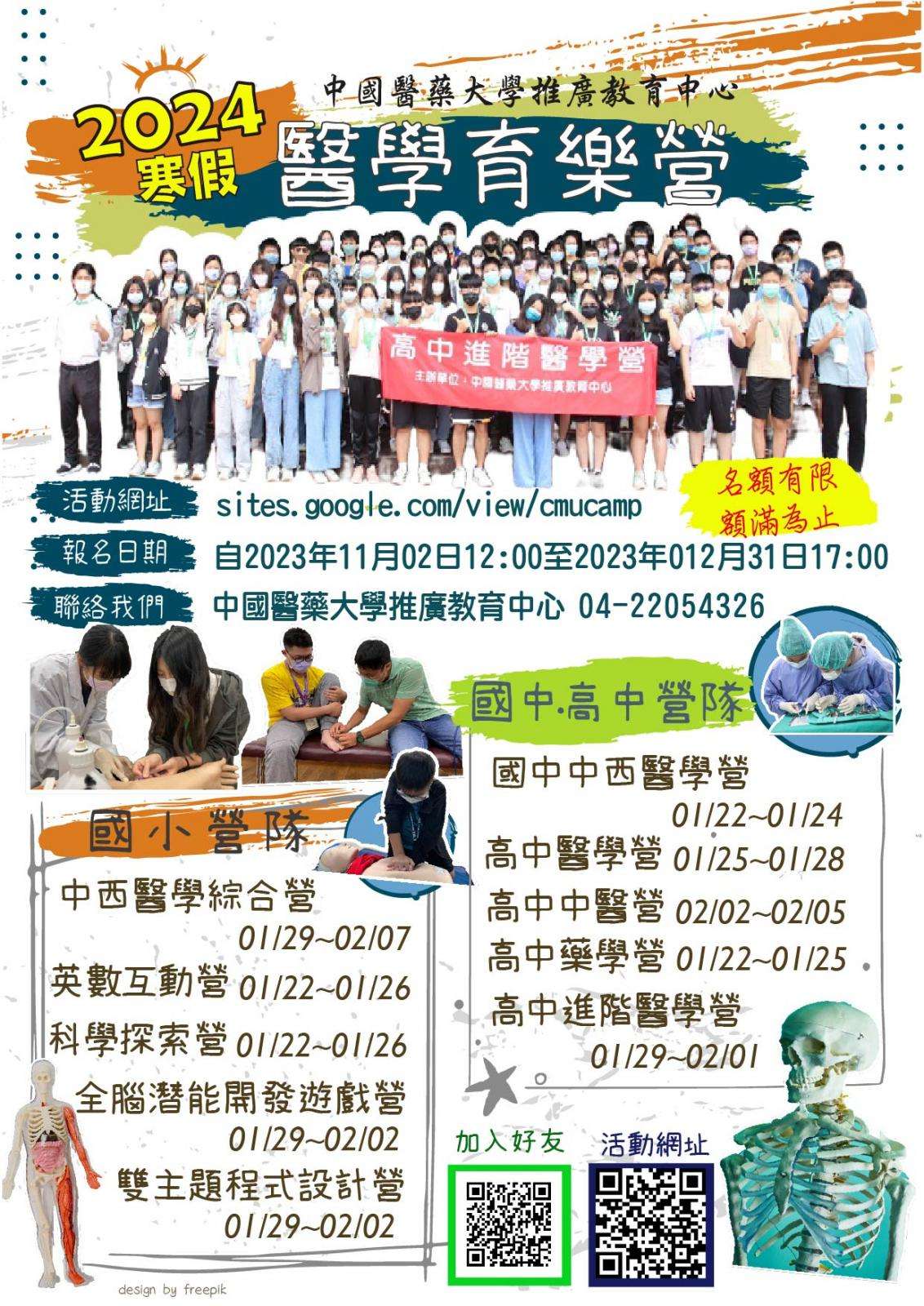 報名日期:即日起至2023年12月31日17:00止(國小營隊報 名至活動前兩週)。歡迎任何問題,請電洽推廣教育中心04-22054326或加入官 方Line ID(@cce22054326)詢問。