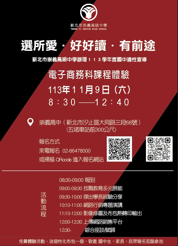 (二)新北市崇義高中google表單報名https://docs.google.com/forms/d/1qZK2yLlgvN4LMDxESufv0l9zCXzjJt1W9q7l_LaaoE/edit