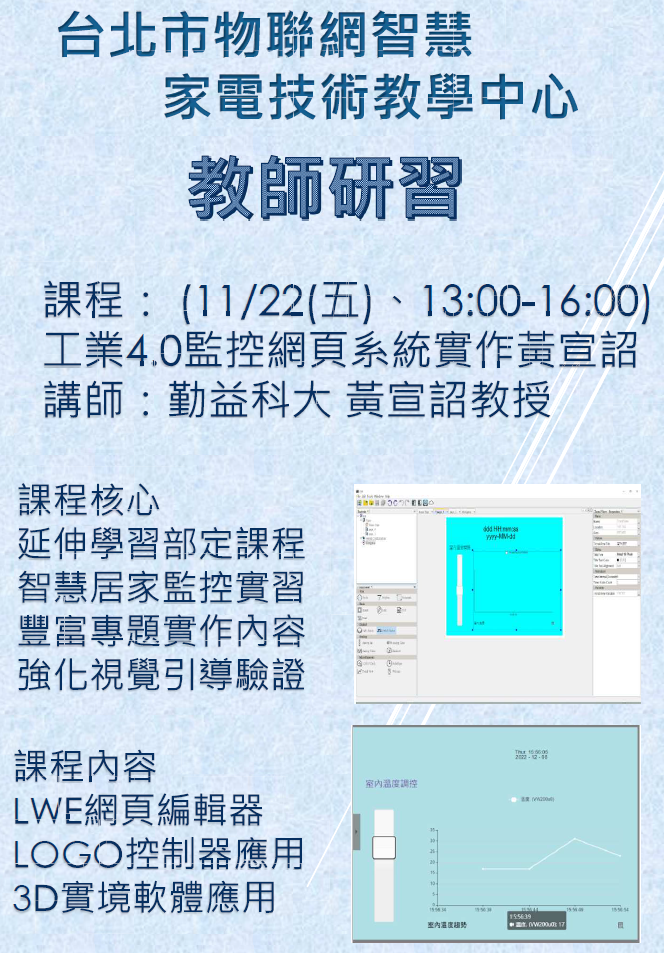 3、上課地點:本校實習工場二樓221教室。數位研習線上會議連結:https://meet.google.com/hpr-ajqn-zeg。