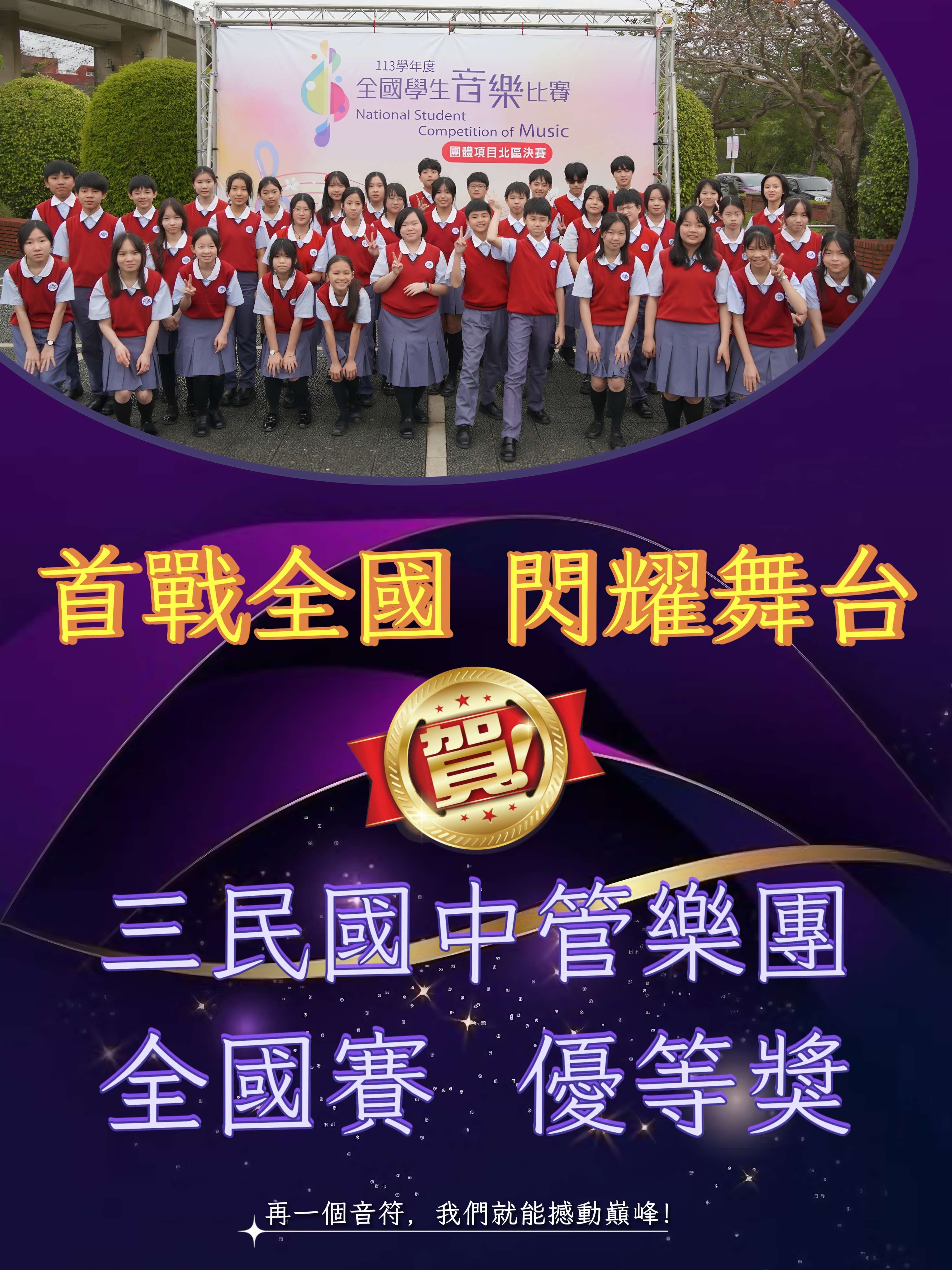 恭喜本校管樂團參加「113學年度全國學生音樂比賽」榮獲優等獎!!!三民國中全體師生同賀