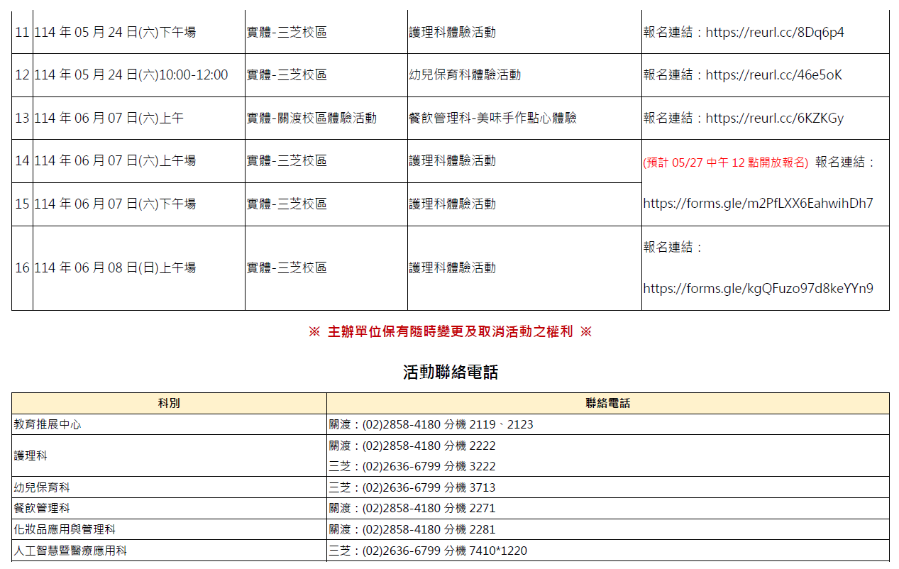 為增進國中九年級學生及家長對五專升學管道及技職類科了解,特規劃相關宣導(線上)及體驗活動,協助學生試探興趣及潛能,以作為生涯規劃參考