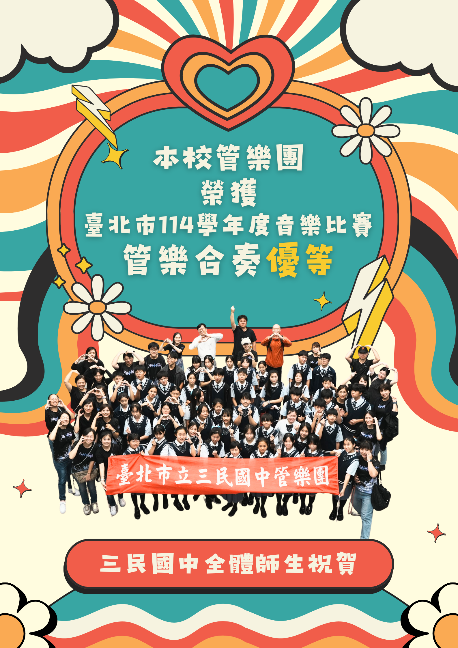 恭喜本校管樂團榮獲「114學年度臺北市音樂比賽管樂合奏」優等