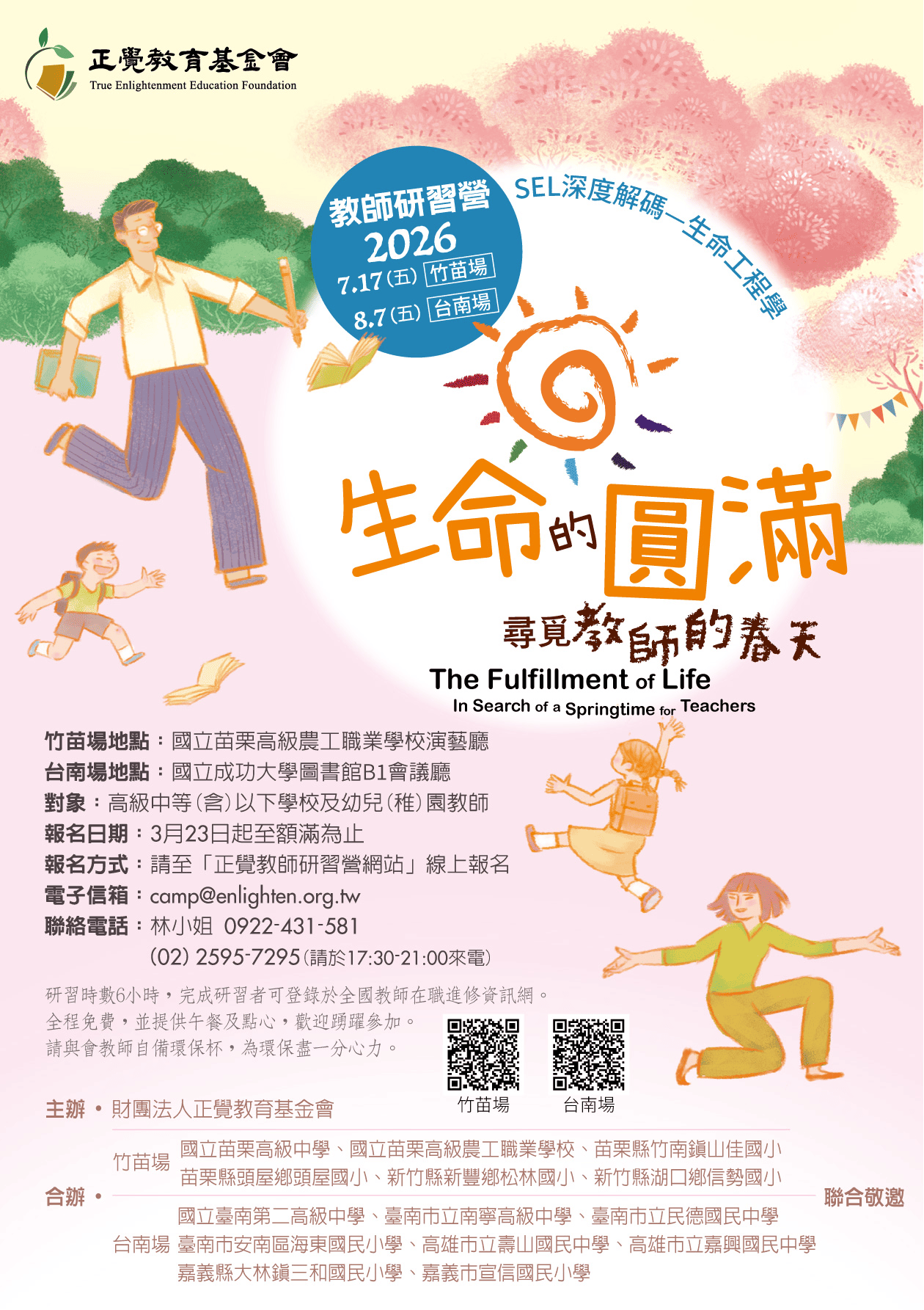 轉知-生命教育教師研習「生命的圓滿──尋 覓教師的春天」